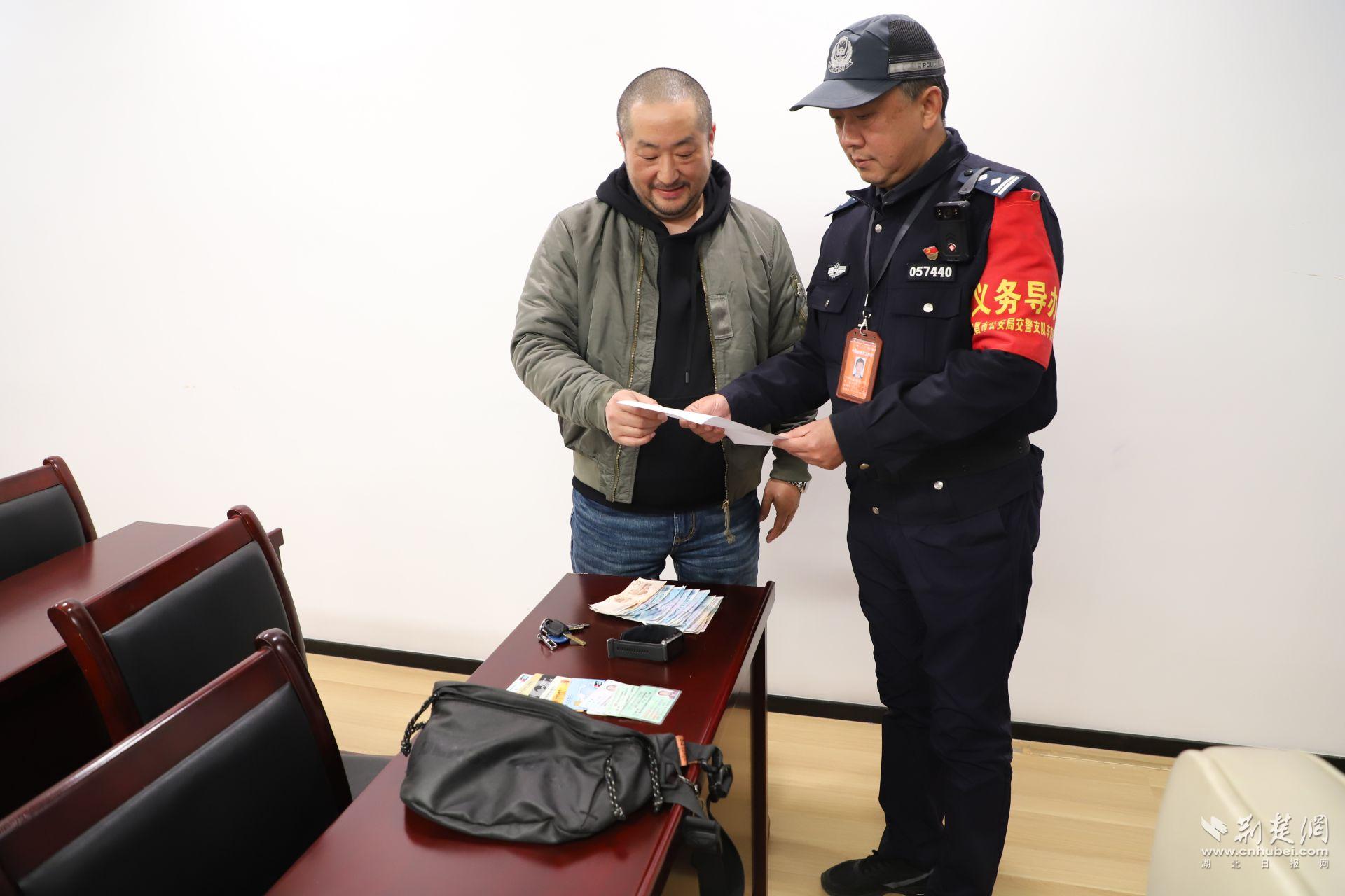 荆楚网(湖北日报网)讯(通讯员 尹俊 尹宇)“太感谢了!包里有现金、身份证和各种重要证件,不知道如果丢了会有多不安!” 12月4日,市民陈先生专程来到宜昌市车管所。他紧紧握着巡查现场民警廖水兵的手,连声感谢。他的言语中充满了感激之情,连连称赞车管所寻回失物高效快捷,是群众所急。