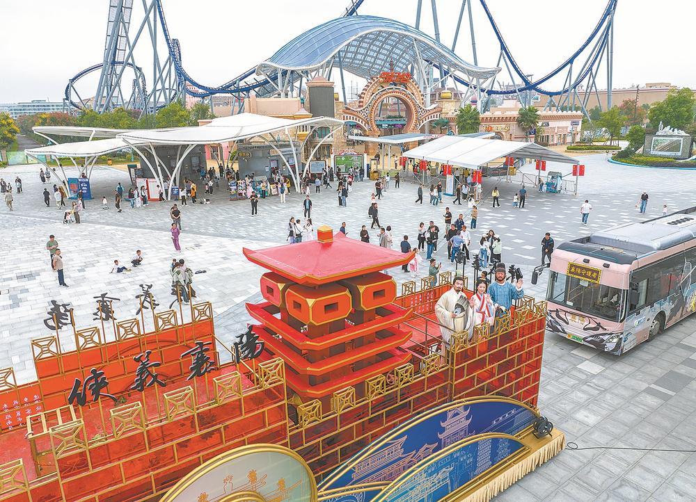 来自武汉的游客查学臣特意与“郭靖”、“H”合影。黄蓉“以襄阳花车为背景。”前几天,我和家人游览了襄阳古城和唐城。今天我们去梦幻谷,又发现了襄阳飘浮。”查学臣说,“2025年中国文化旅游产业博览会期间,我看到了襄阳飘浮的风采。没想到出差到襄阳,又遇见了。向阳真是帮了大忙了!”