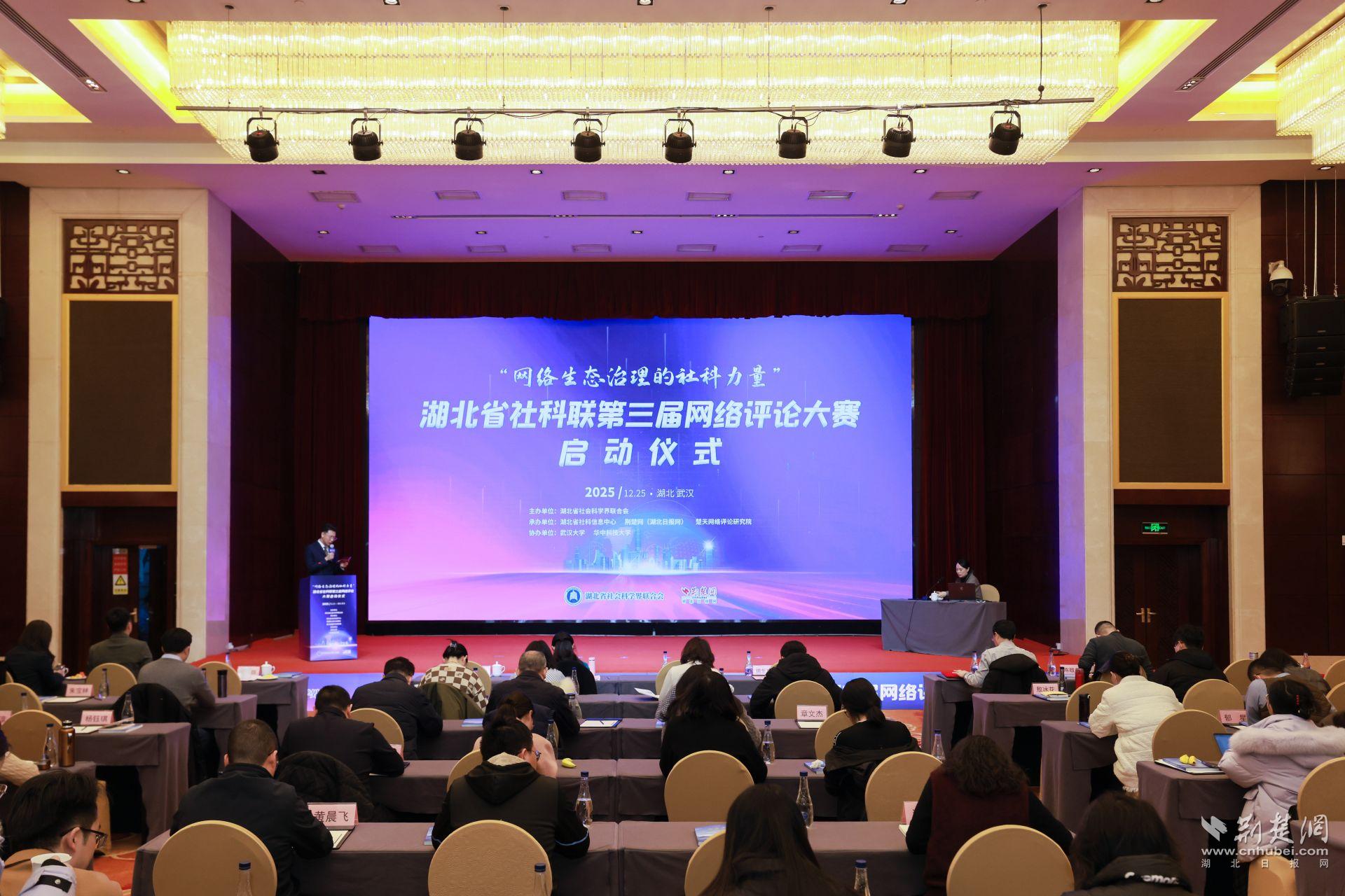 荆楚网(湖北日报网)讯(记者丁楚峰)冬天蓄势待发,春天蓄势待发。 12月25日,武汉楚天粤国际酒店温馨舒适,创意的火花在这里爆发、碰撞。由湖北省社科联主办,湖北省社科信息中心、荆楚网(湖北日报网)、楚天网络评论研究院承办的“网络生态治理社科力量”——第三届湖北省社科联网络评论大赛正式启动。